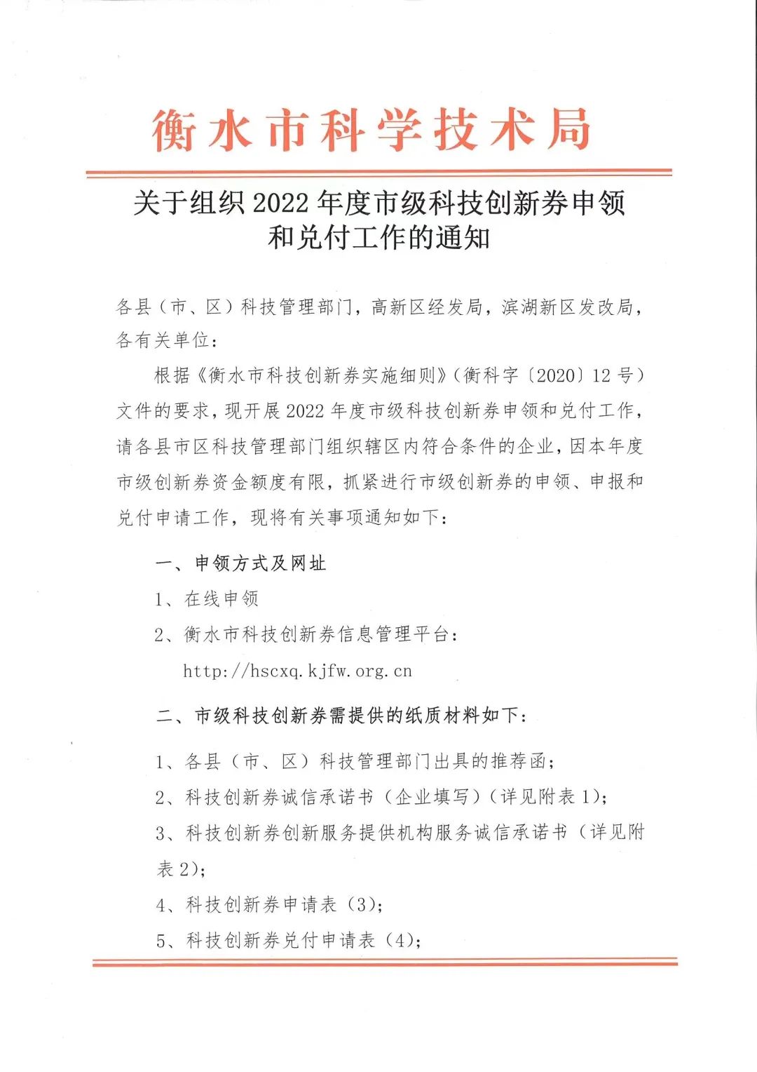 關(guān)于組織2022年度市級(jí)科技創(chuàng)新券申領(lǐng)和兌付工作的通知