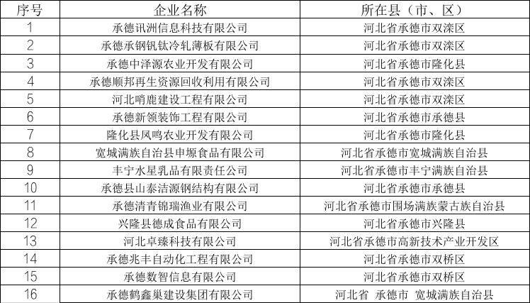 關(guān)于承德市推薦申報(bào)2025年第三批河北省創(chuàng)新型中小企業(yè)名單的公示依據(jù)省工信廳年度工作安排,按照《河北省優(yōu)質(zhì)中小企業(yè)梯度培育管理細(xì)則》標(biāo)