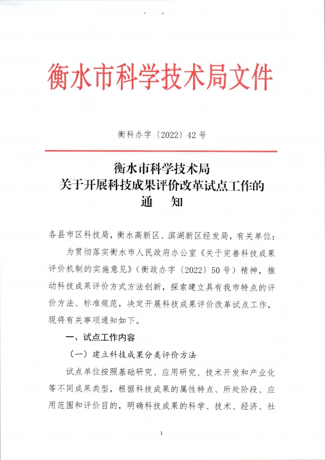 衡水市科學(xué)技術(shù)局關(guān)于開(kāi)展科技成果評(píng)價(jià)改革試點(diǎn)工作的通