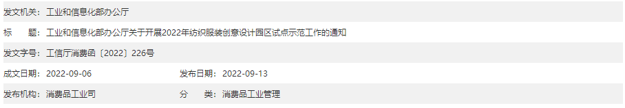 工業(yè)和信息化部辦公廳關(guān)于開展2022年紡織服裝創(chuàng)意設(shè)計園區(qū)
